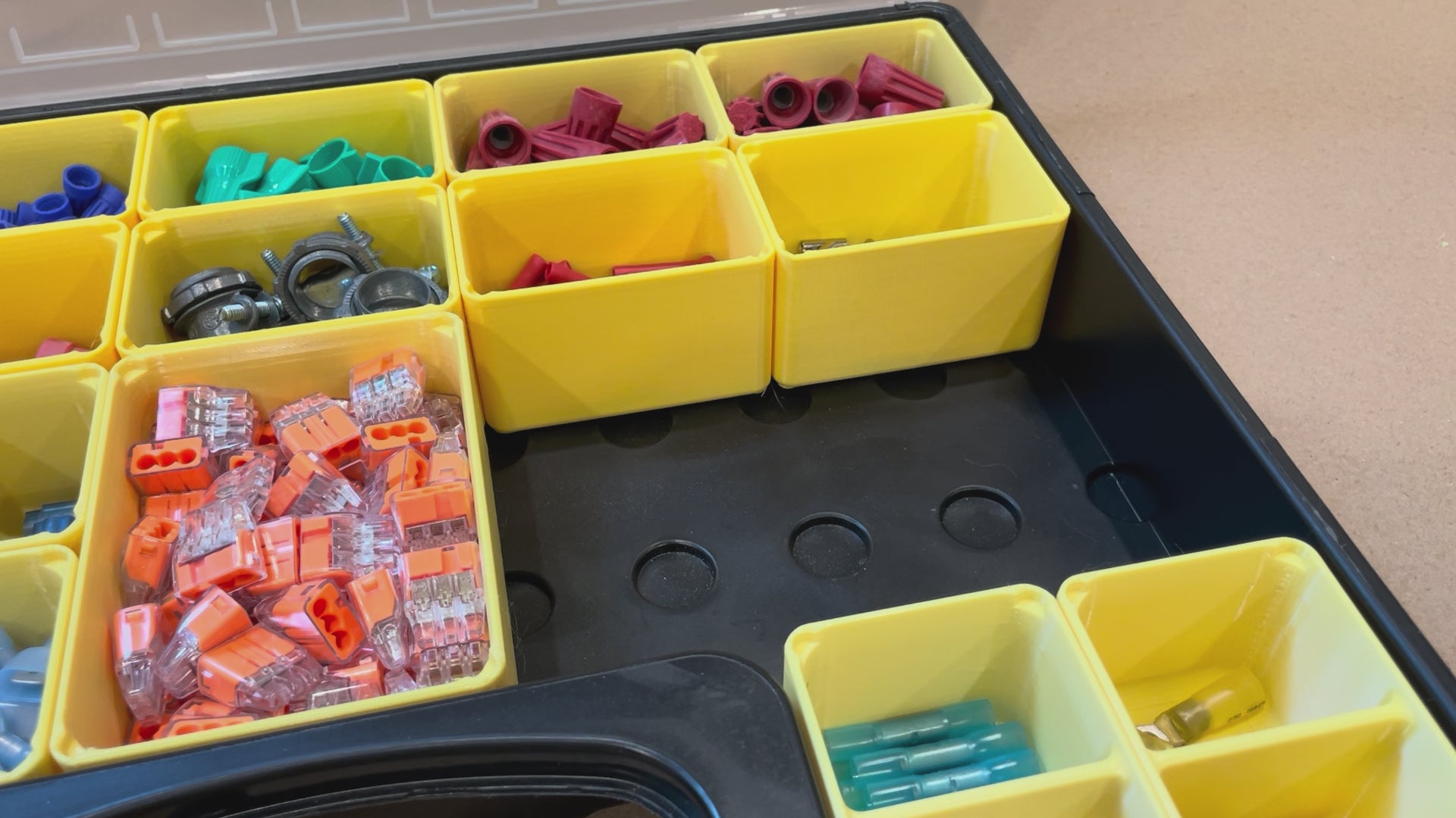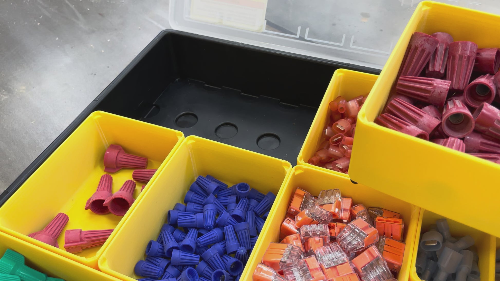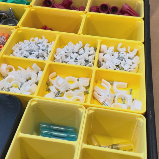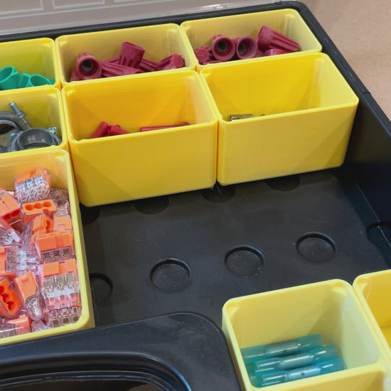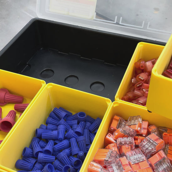 A premium, extra large bin for the Harbor Freight Storehouse storage containers. They feature 3mm thick walls and sturdy feet, which lock them in place.